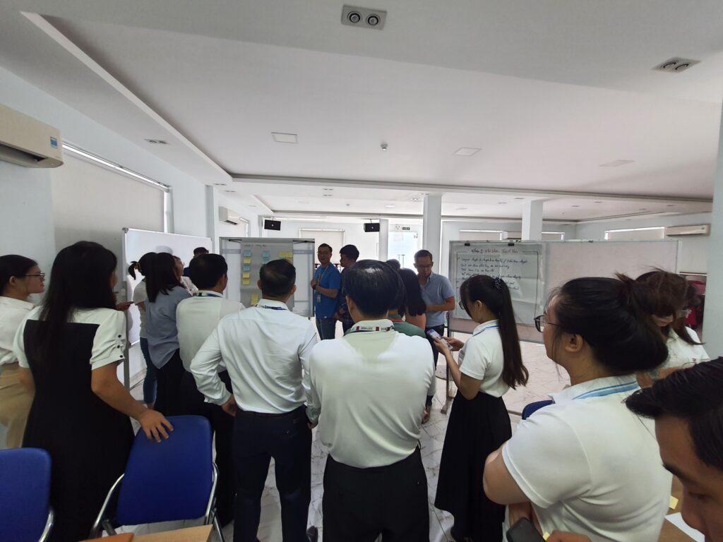 Các thành viên tự suy nghĩ về cách cải thiện quy trình tốt hơn, viết ra các ý tưởng cải tiến của mình trên post -it note và trình bày ý tưởng của họ với nhóm, chọn ra các ý tưởng tối ưu nhất thông qua phân tích ma trận ưu tiên.